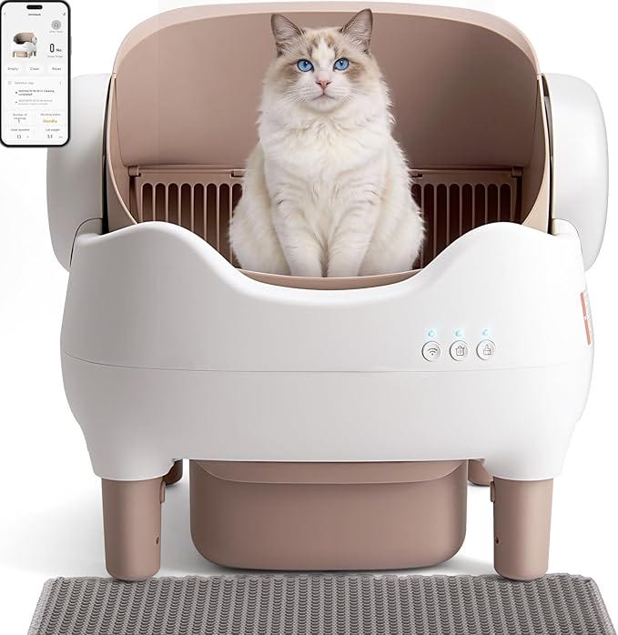 Spacious and reliable self-cleaning litter box with an open-top design that suits cats of all sizes and multi-cat homes. Features quiet automatic cleaning, a large 13L waste bin, and strong safety protection with infrared and weight sensors. App control adds convenience, making daily maintenance easier and keeping the litter area consistently clean.