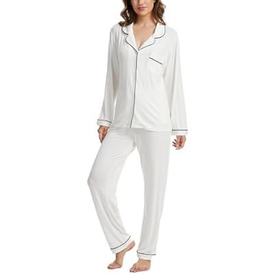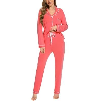 Soft, breathable 2-piece women’s pajama set with button-down top, drawstring pants, and notch collar. Comfortable for everyday wear, nursing, or recovery. Machine washable and durable.